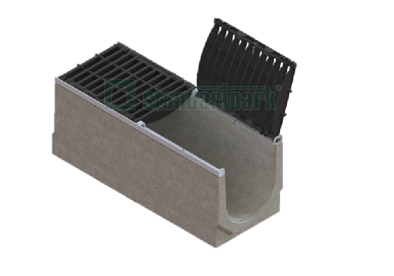 Лоток водоотводной BetoMax DN300 бетонный каскадом h260-h580 с оцинкованной насадкой с открывающейся решеткой чугунной щелевой ВЧЩЗ5 кл.Е (к-т)