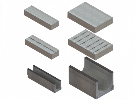 Бетонные решетки и крышки представлены в 4 гидравлических сечениях: DN160, DN200, DN300, DN500. В зависимости от места установки и предполагаемой интенсивности эксплуатации могут быть выполнены следующих классов нагрузки: А15, С250, Е600.