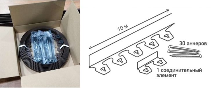 Поставляется комплектом в коробке с соединительным элементом и крепежными анкерами (30 шт.).