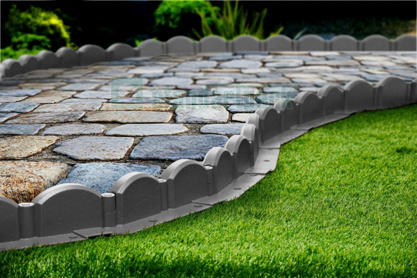 - Естественный вид: текстура бордюра имитирует глиняное ограждение, гармонично вписываясь в любой садовый ансамбль