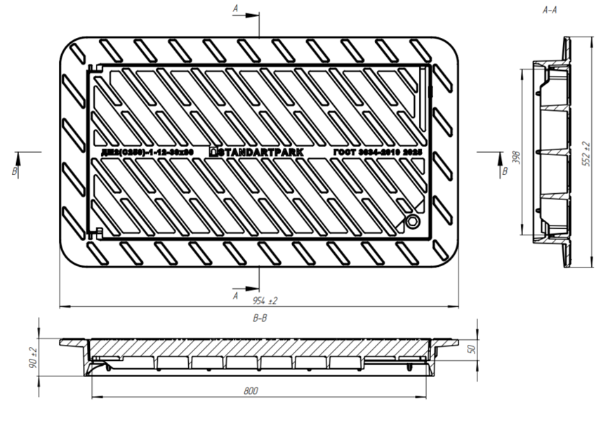 В ассортименте компании «Стандартпарк» представлен аналогичный продукт — чугунный дождеприемник ДУ2 с повышенным классом нагрузки D400.