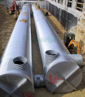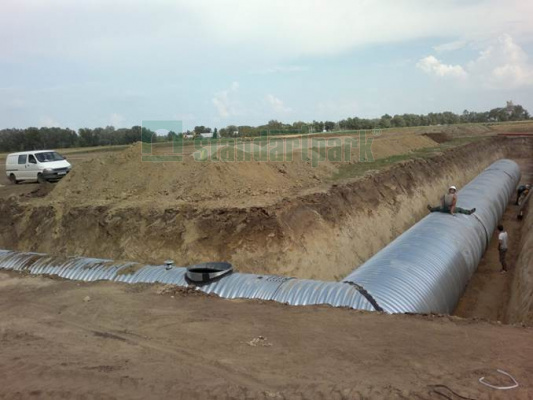 Стальные резервуары спиральновитой формы – современное решение для хранения жидкостей. Конструкция изготовляются с модулей гофрированных оцинкованных стальных труб диаметром от 1,5 до 3,2 м, которые соединяются между собой с помощью хомутов. Благодаря этому изделия могут быть произведены неограниченных габаритов и рабочих объемов согласно техническим заданиям любой сложности.
