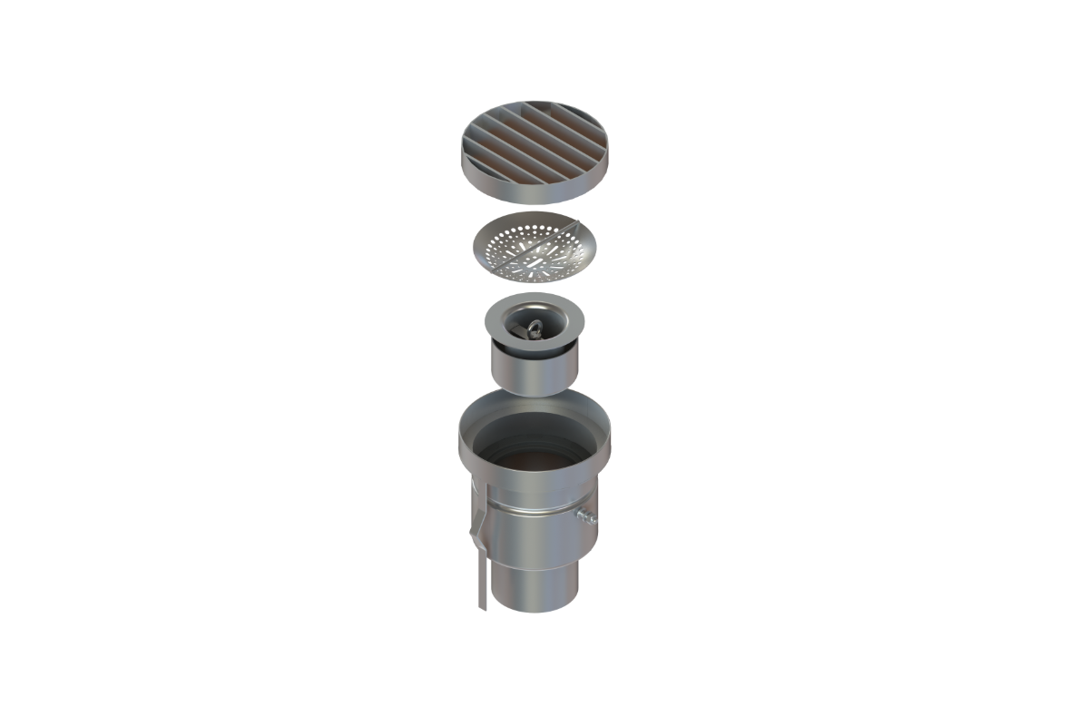 Комплект цилиндрического трапа однокорпусного с круглым оголовком ф160 и вертикальным выпуском ДУ100 (Щелевая решетка)