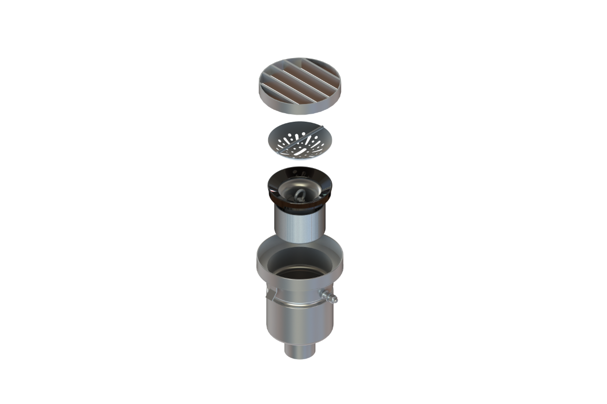 Комплект цилиндрического трапа однокорпусного с круглым оголовком ф110 и вертикальным выпуском ДУ50 (Щелевая решетка)