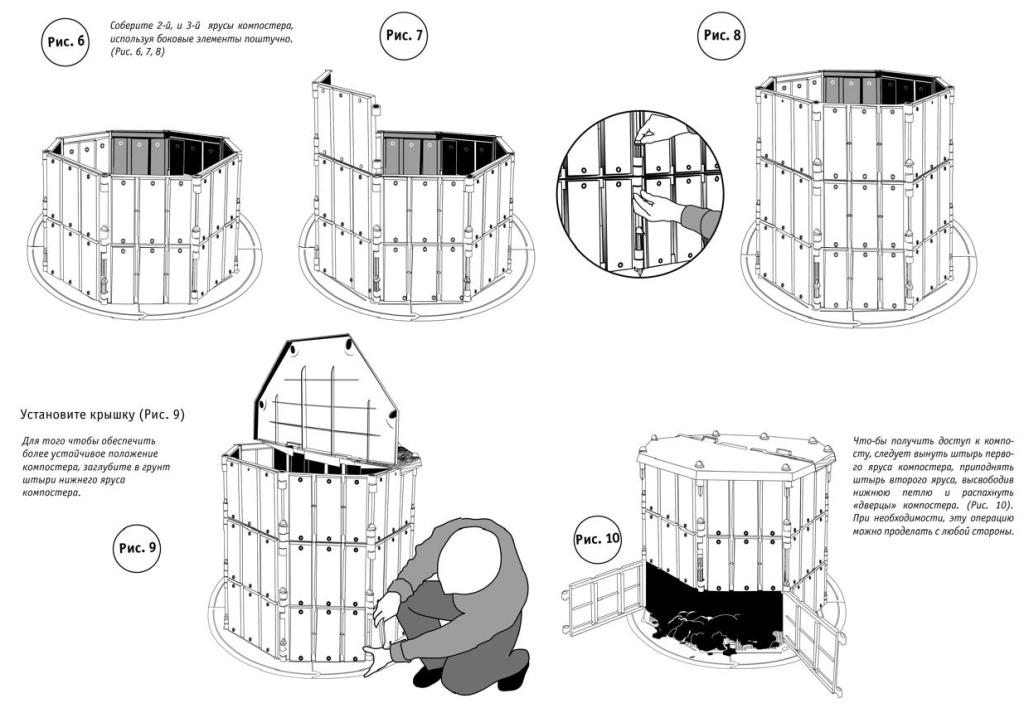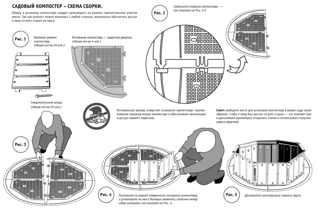 Представляем практичный и стильный компостер для вашего участка! Устройство легко монтируется и надёжно закрепляется в грунте с помощью специальных пластиковых штырей.