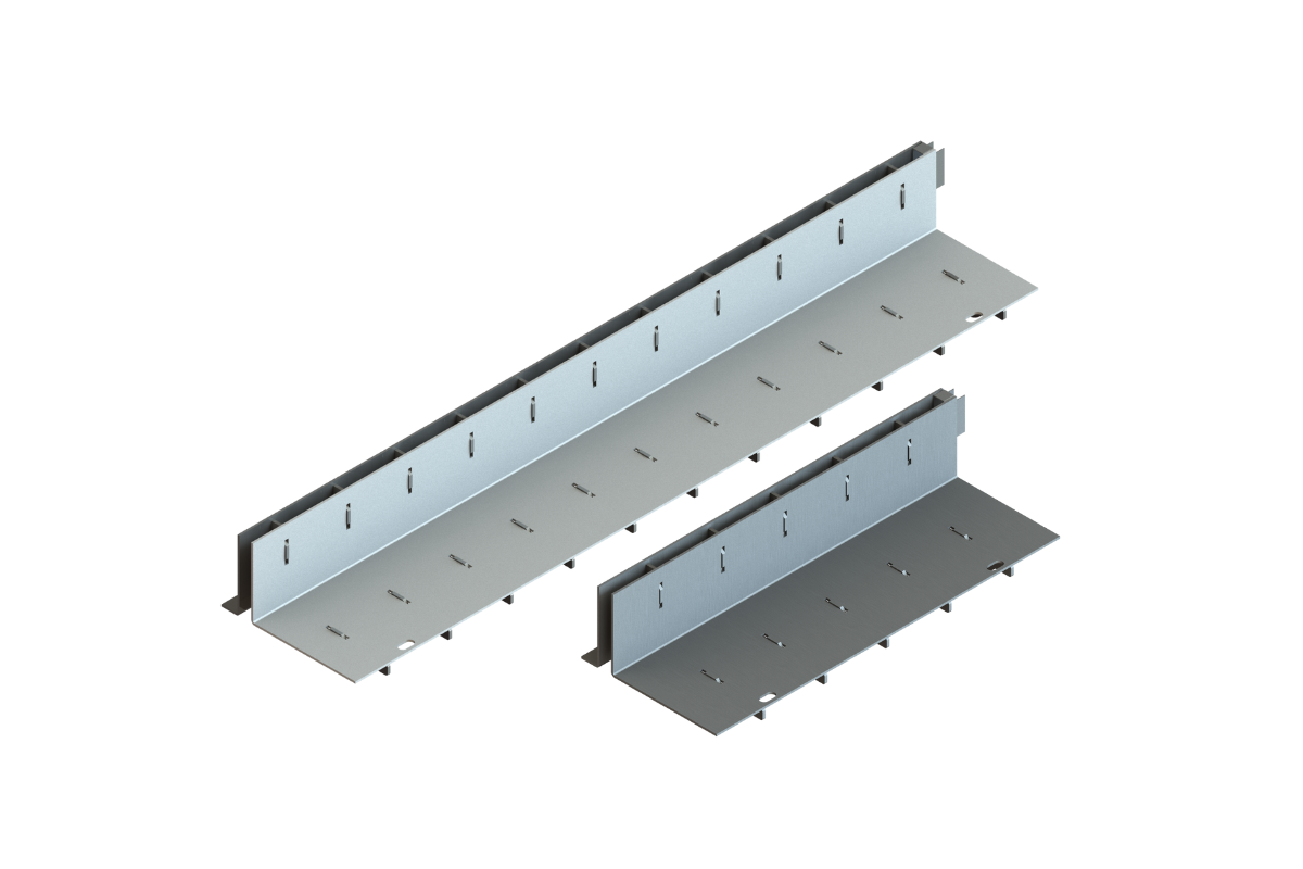 Насадки совместимы со всеми материалами лотков Drive DN100–DN200. Для соединения с пластиковыми, бетонными и полимербетонными лотками серии Drive применяется комплект крепежа: