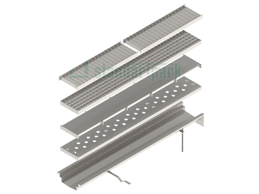 Лотки Евро 120 представляют собой элемент системы внутреннего водоотвода, предназначенный для сбора стоков и их отвода в канализационную сеть. Изготовляются из нержавеющей стали AISI 304/304L, AISI 316Ti или AISI321 толщиной от 1,5 до 3,0 мм в зависимости от глубины и предполагаемых нагрузок на изделие во время эксплуатации.
