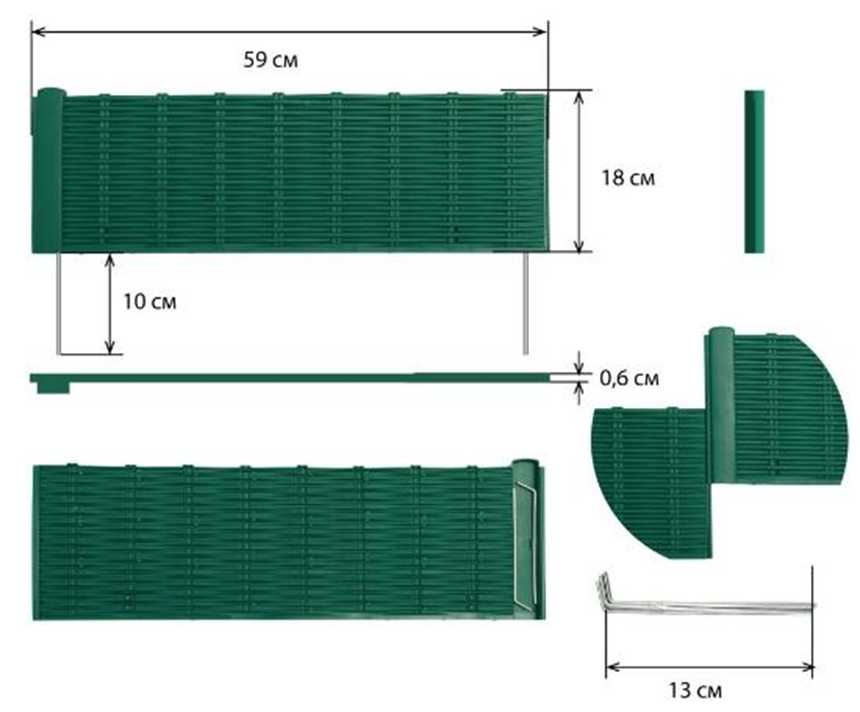 Модульная конструкция позволяет создавать ограждения любой протяженности. В наборе предусмотрены прочные металлические колышки для надежной установки в грунте. Идеально подходит для оформления цветников, овощных грядок, садовых тропинок и мест отдыха. Высота 18 сантиметров обеспечивает прекрасный обзор растений.