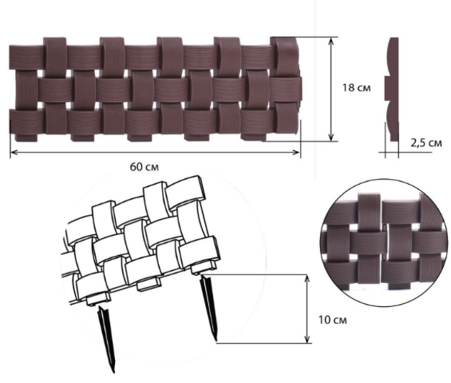 Садовое ограждение «Плетёнка» (цвет коричневый)