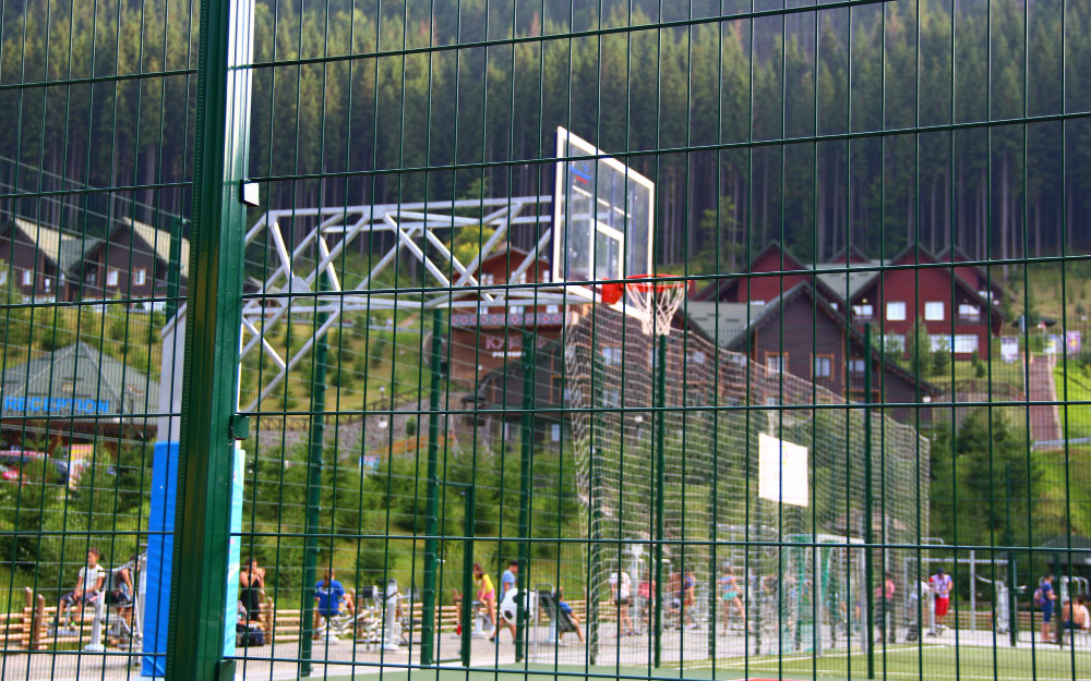 - Спортивные и детские площадки. Применяются сетчатые и секционные конструкции для ограничения доступа.